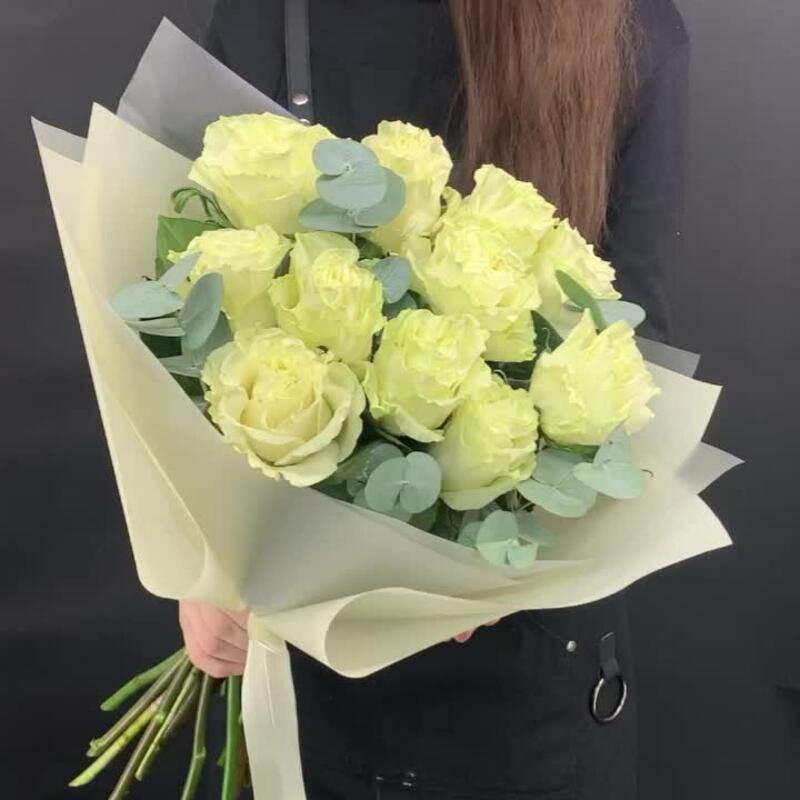 Эвкалипт – 1 шт.Роза – 11 шт.Упаковка – 1 шт.Инструкция по уходу – 1 шт.подкормка для стойкости цветов – 1 шт.